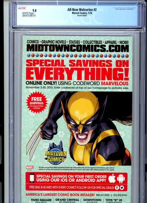 CGC 9.8 All-New Wolverine #2 Variant 1st Appearance Gabby